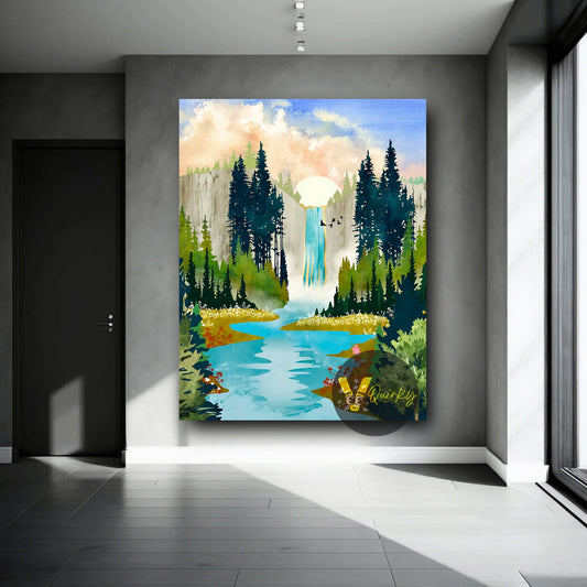 Waterfall Falling From The Mountains Vastu Canvas Painting