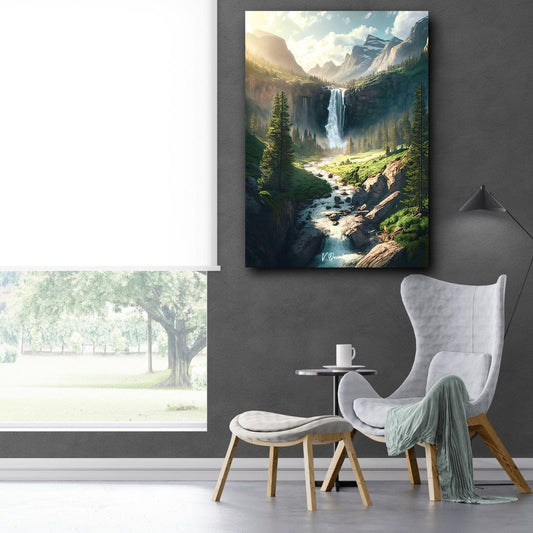 Waterfall Falling From The Mountains Vastu V2 Canvas Painting