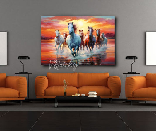 Seven Horses Running on Water Vastu Canvas Painting