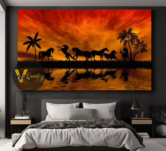 Beautiful Sunset Horses Canvas Painting