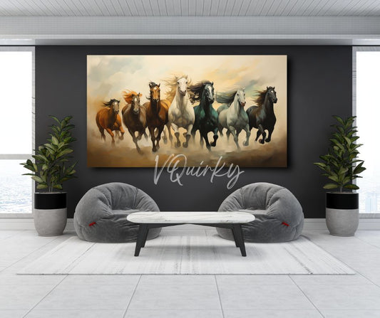 Seven Horses Running on Sand Vastu Canvas Painting