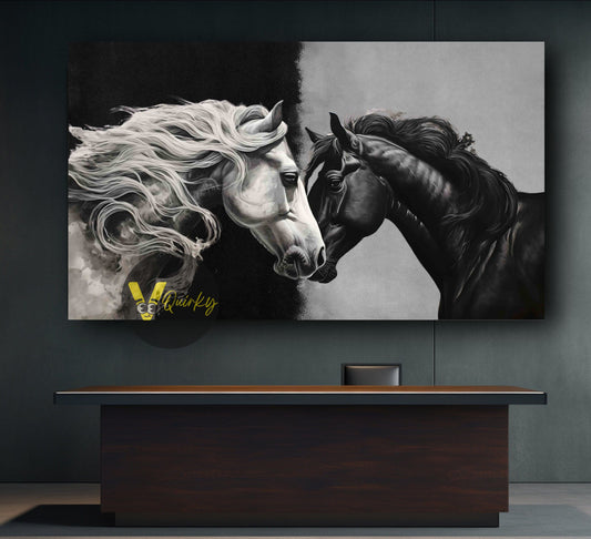 -50% OFFBlack & White Horse Canvas Painting
