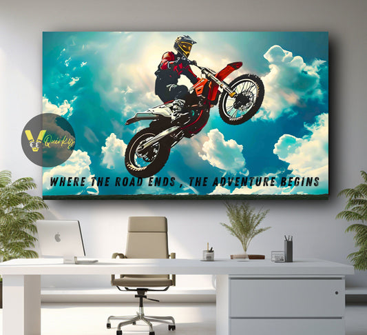 Biker Where The Road Ends The Adventure Begins Canvas Painting