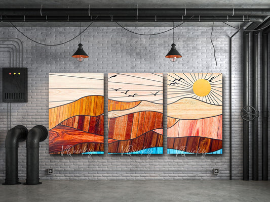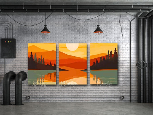 Boho Sunset - Set Of 3 Nature Canvas Painting