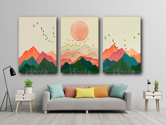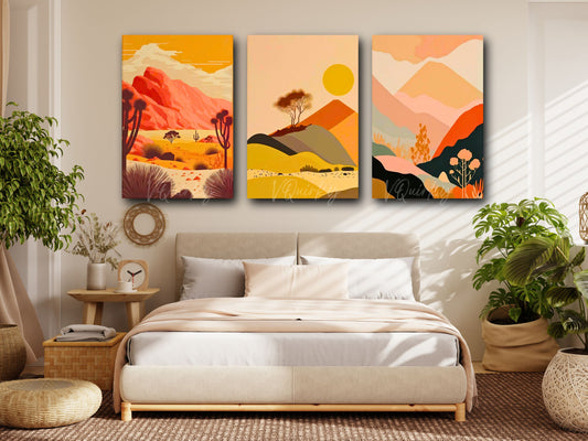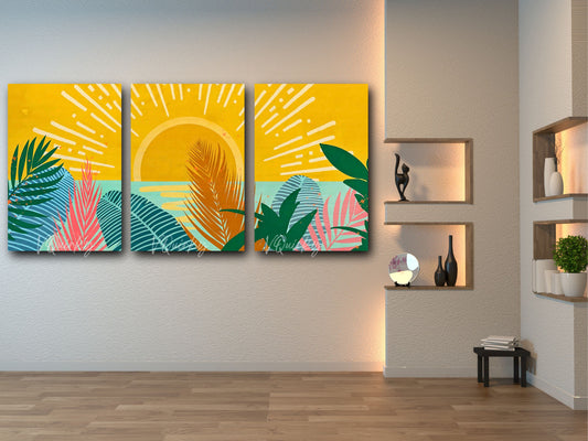 Boho Vibrant Sunrise - Set Of 3 Nature Canvas Painting