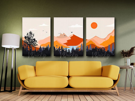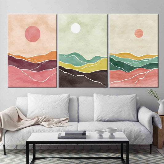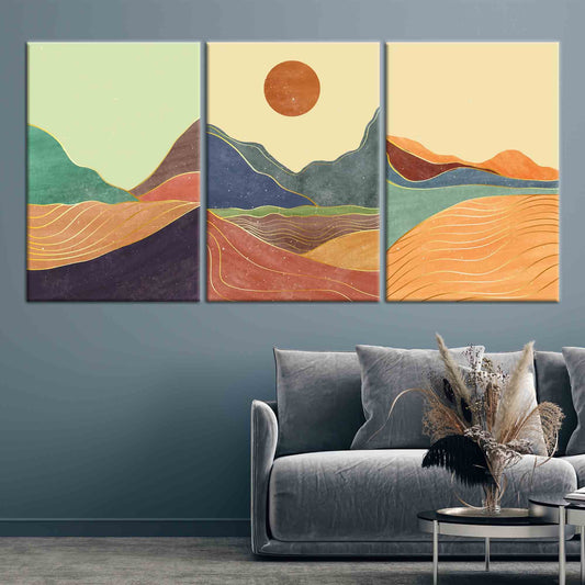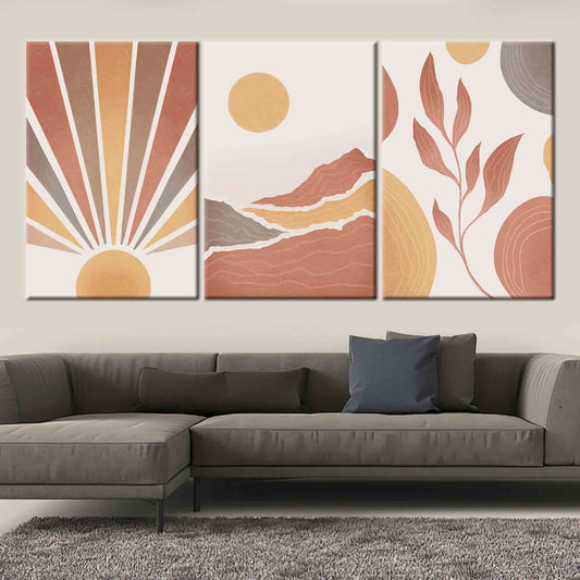Boho Sunrise - Set Of 3 Nature Canvas Painting