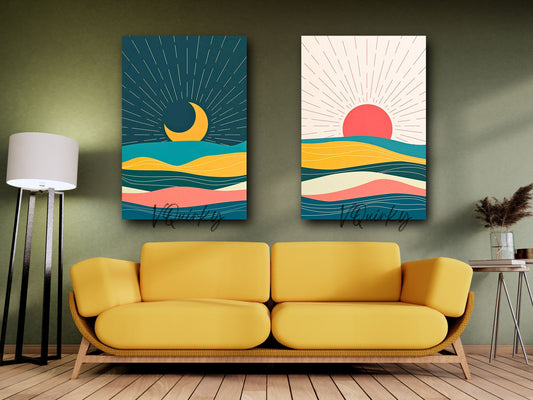 Boho Sun & Moon- Set Of 2 Canvas Painting