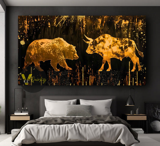 Abstract Golden Bear VS Bull Stock Market Trading Canvas Painting
