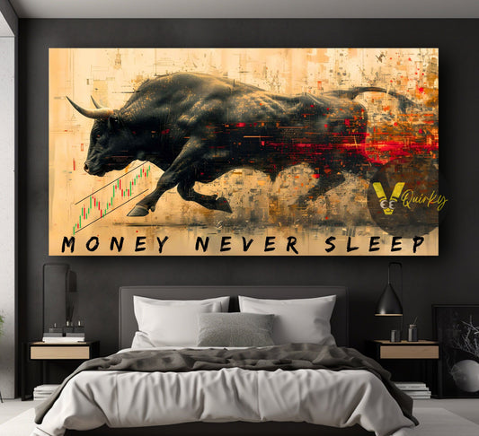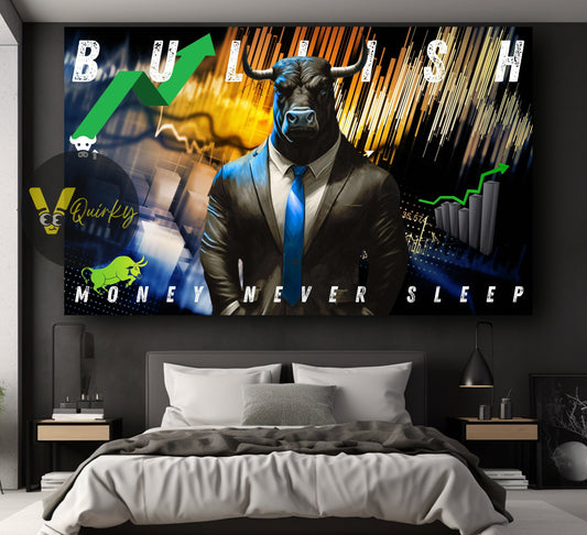 Bullish Money Never Sleep Stock Market Trading Canvas Painting