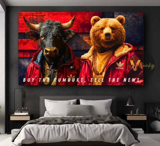 Bear VS Bull Buy The Rumours, Sell The News Stock Market Trading Canvas Painting