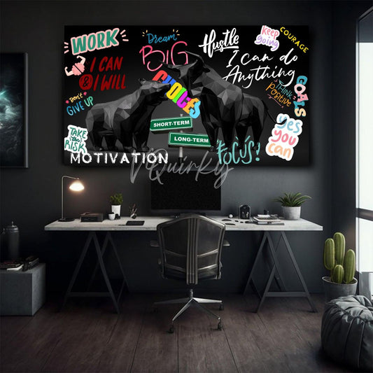 Bear And Bull with Motivational Words H10 Stock Market Trading Canvas Painting