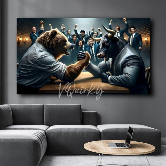 Bull VS Bear H8 Stock Market Trading Canvas Painting